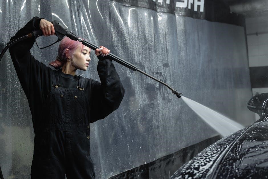 Pump maintenance is also vital, preventing damage and maintaining pressure. Following the manual’s guidelines will help avoid costly repairs and extend the life of your pressure washer.